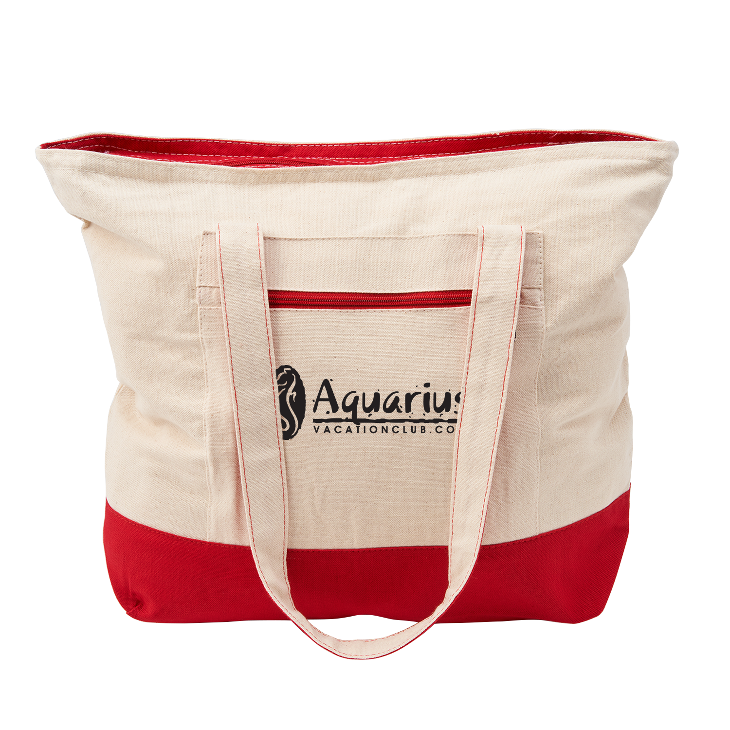 12 oz. cotton canvas Large zippered main compartment Front zippered pocket 22” reinforced handles Perfect to take on day trips, beach days & sporting events