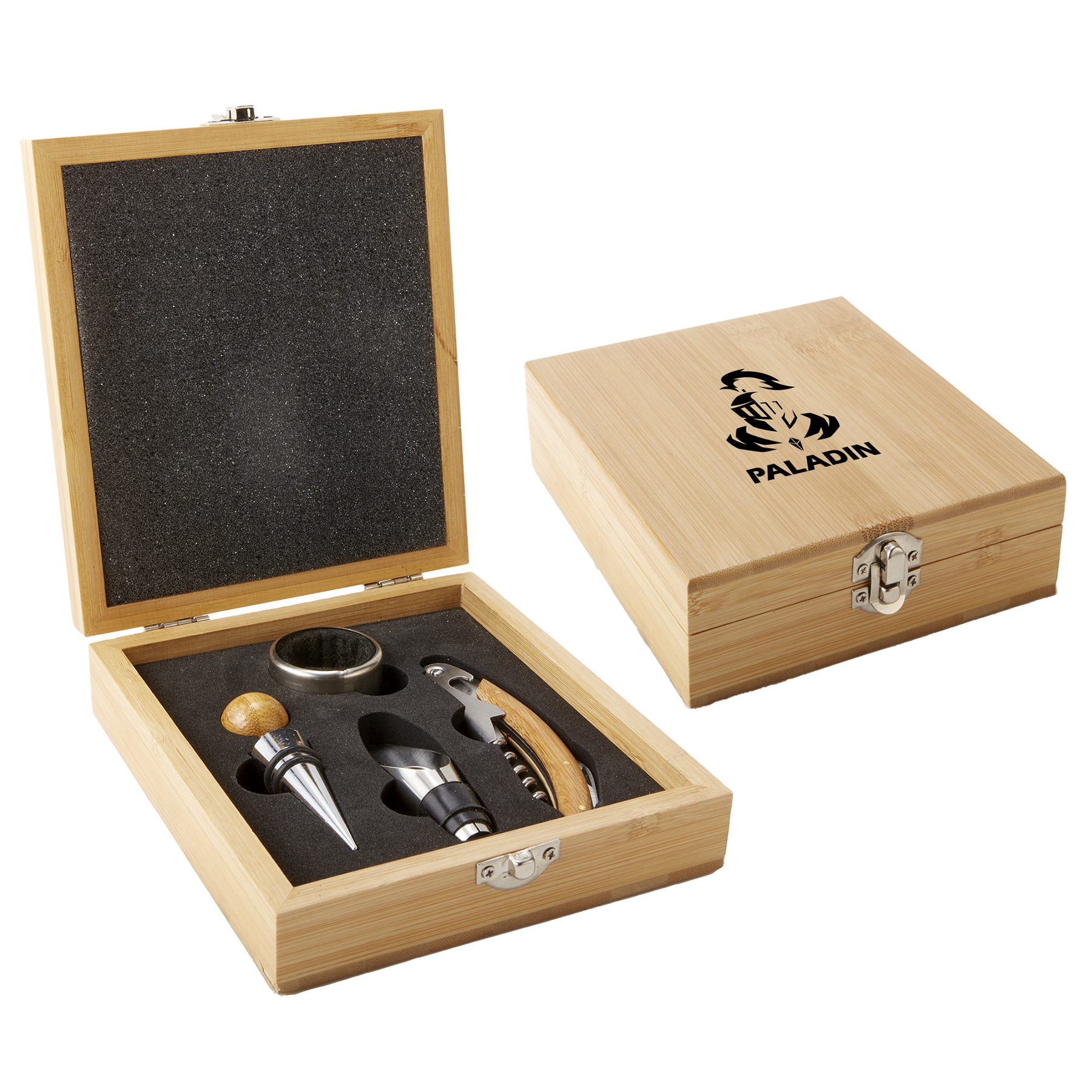 • Gift set includes: wine opener, wine stopper, wine pourer and drip collar