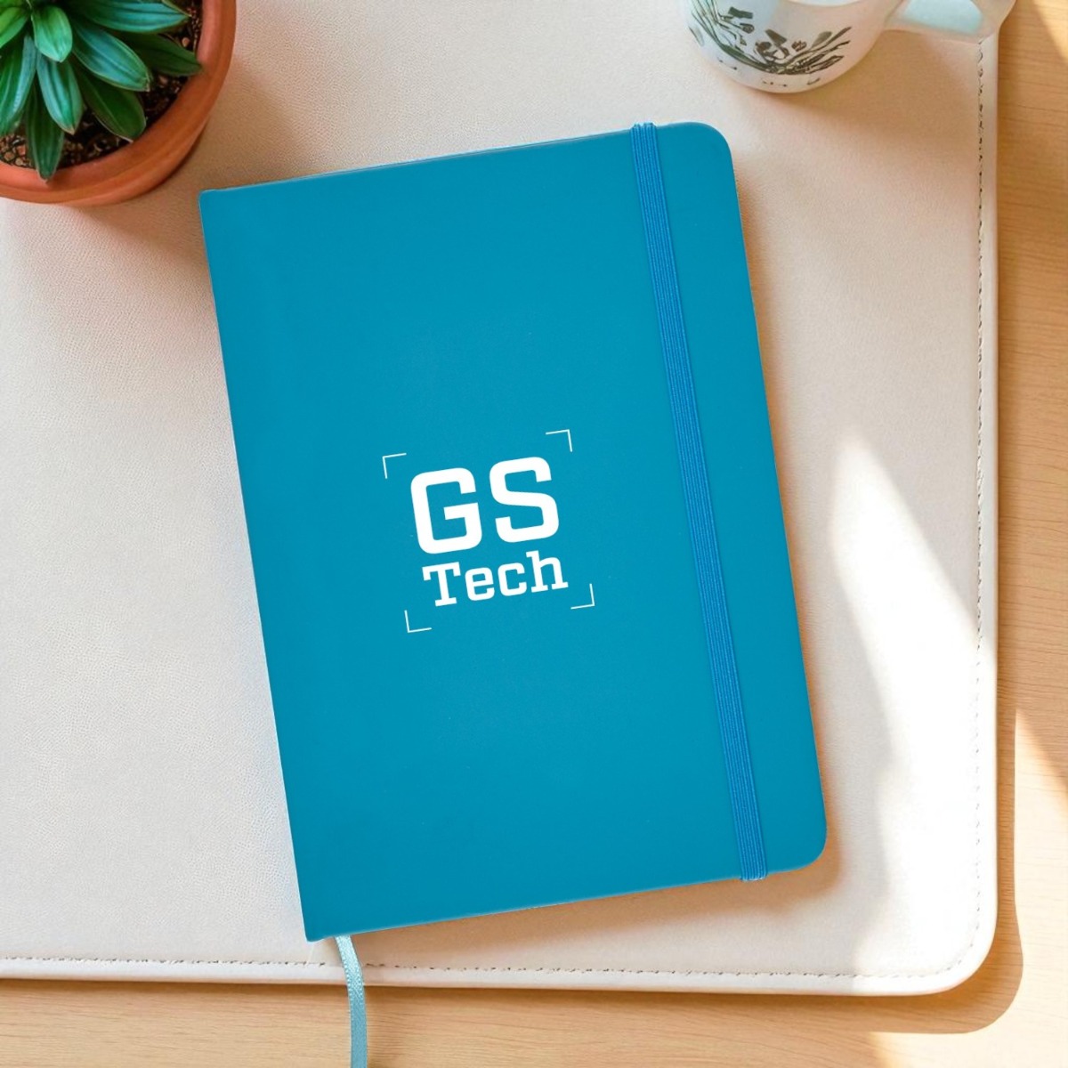 Hardbound journal with soft touch Thermal PU cover 80 lined sheets Features elastic band closure and ribbon bookmark