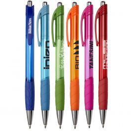 Click style transparent pen with matching rubber grip Chrome ferrule & plunger Black medium point