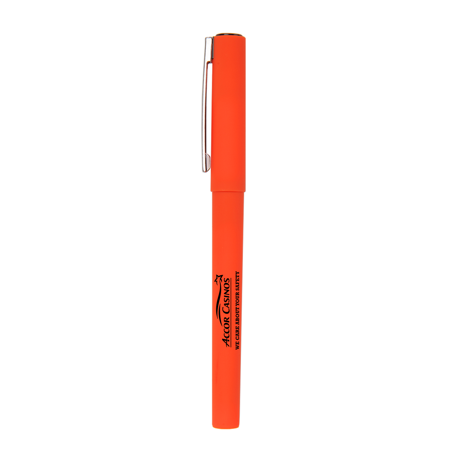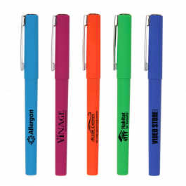 Two-piece gel pen - cap on barrel design Comforting soft touch feels great in the hand Brightly colored barrel with matching colored grip Chrome clip Black medium point High-Quality Gel Ink
