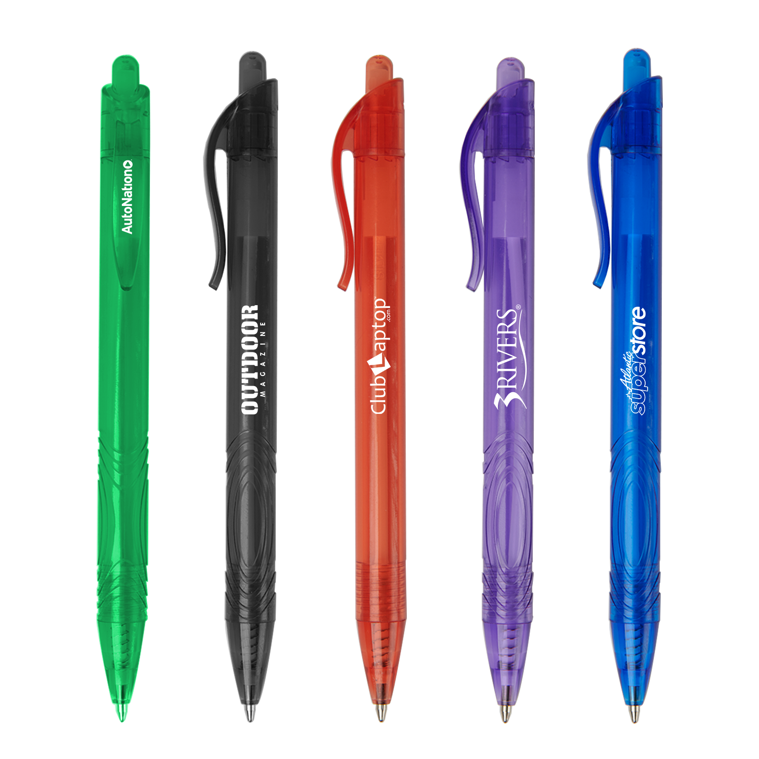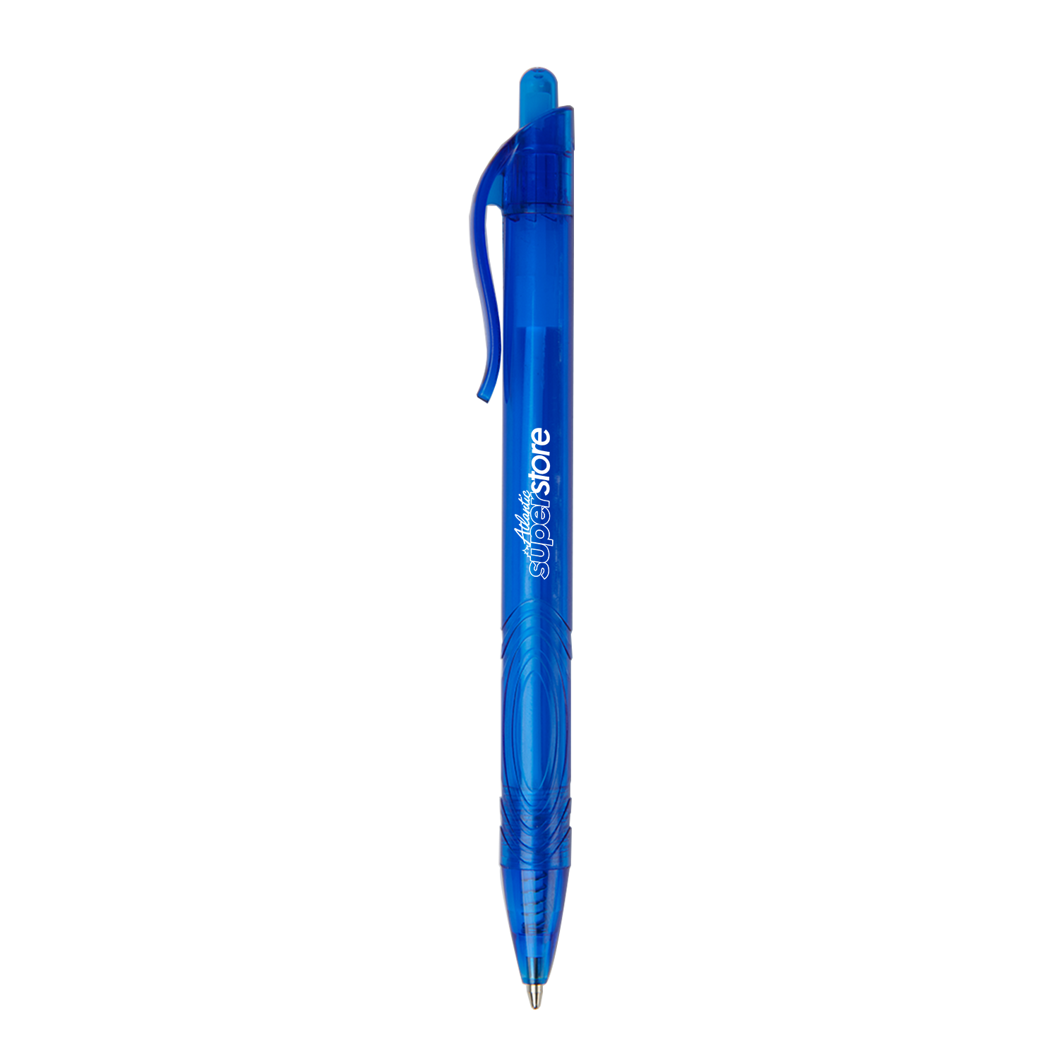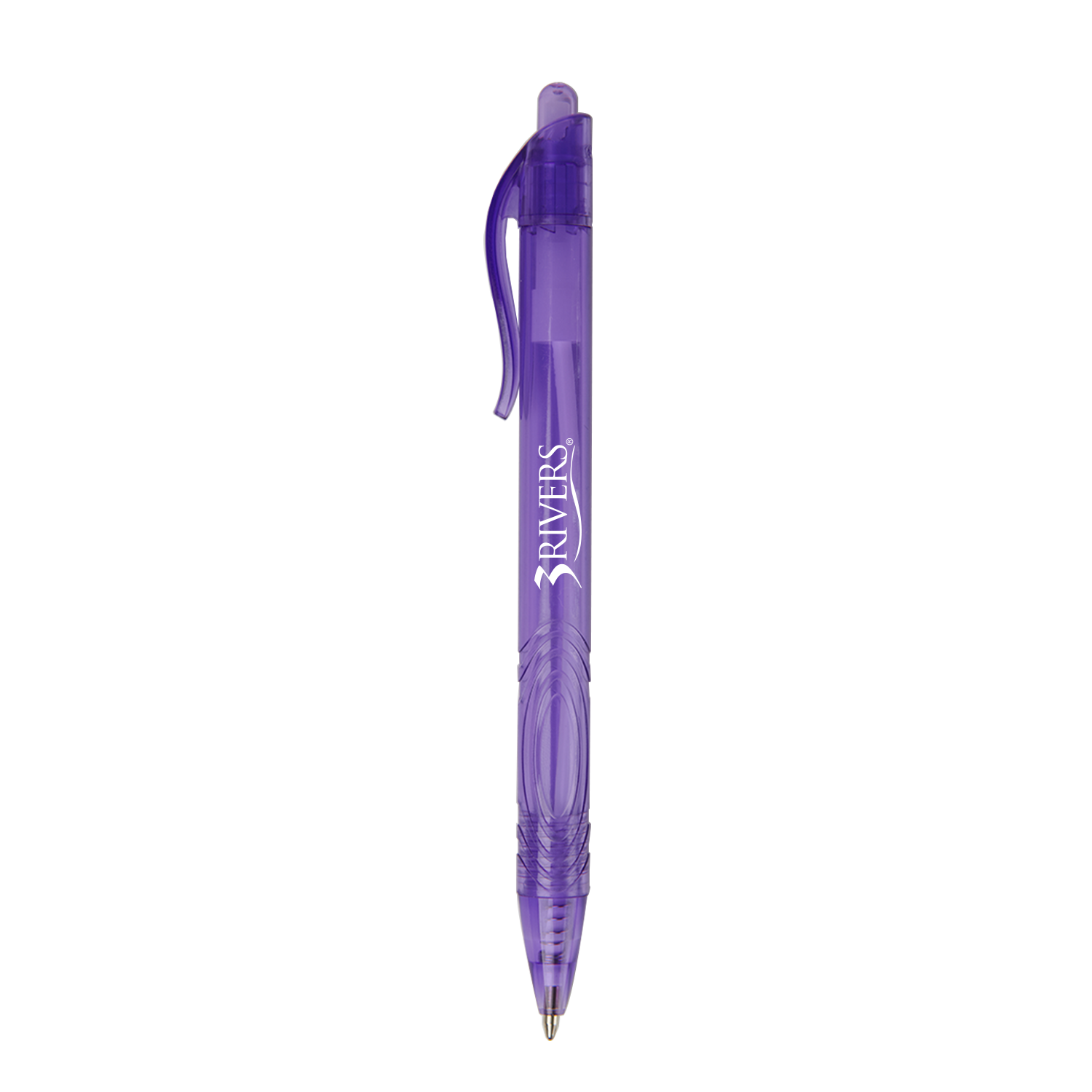 Simplistic retractable ballpoint pen Unique grip pattern Manufactured from Recycled PET bottles & material Translucent barrel, clip, ferrule & plunger Black medium point High-Quality Ink