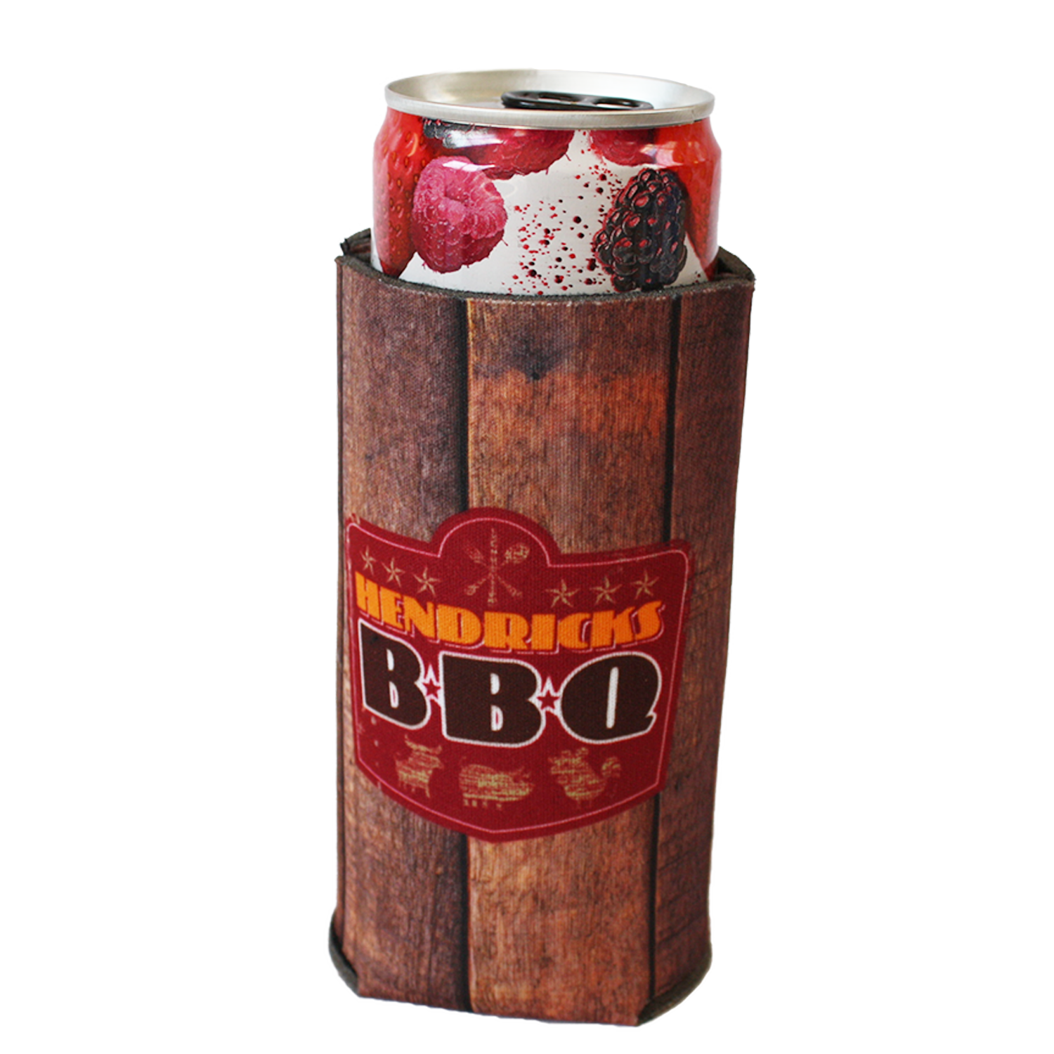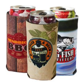 Fabric/PU foam construction keeps cans insulated & easier to handle Features sharp, photographic quality full color sublimated imprint on front, bottom & back Fits standard size 12 oz. slim cans (can fit 16 oz. size) Folds flat for easy storage or sliding in pocket or purse