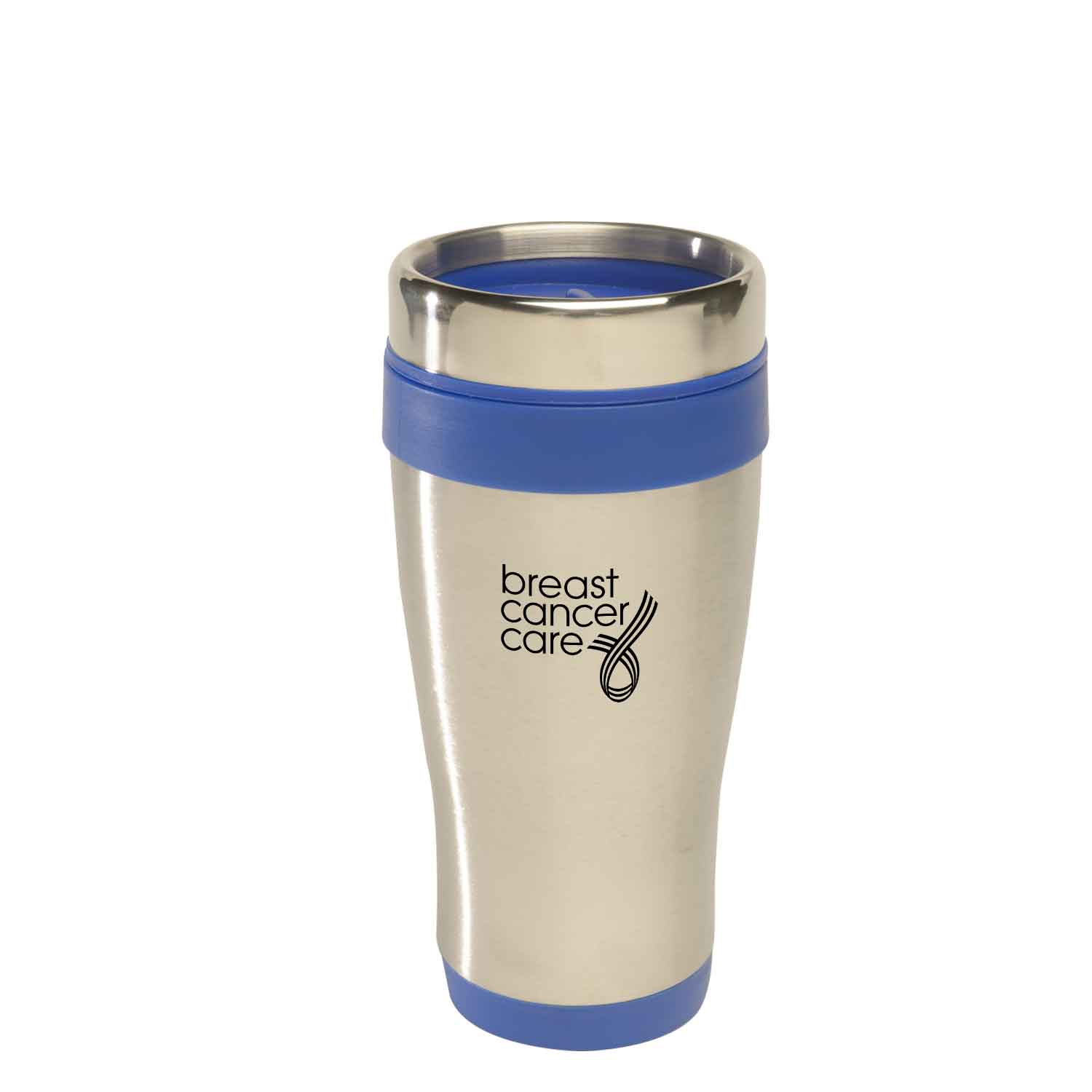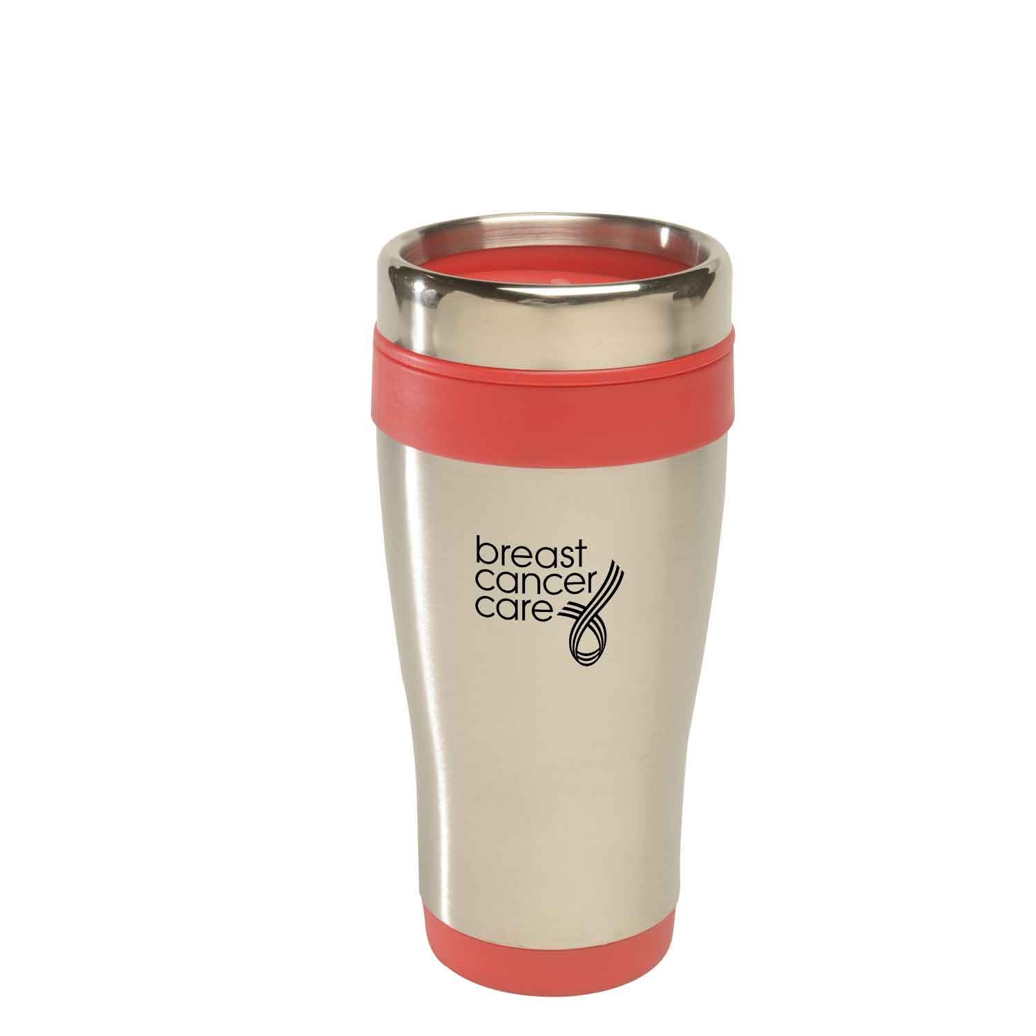 16 oz. tumbler features double-wall construction with a stainless steel outer wall and colored polypropylene liner Contains a stainless steel rim and plastic twist-on lid with sliding closure Fits most auto cup holders